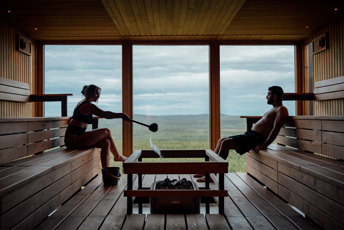 Varva ner i Kaamos Lodges bastu och spa, där panoramautsikten förhöjer upplevelsen. Njut av vår traditionella bastu, grunda relaxpool inomhus eller den bekväma grunda utomhuspoolen, som erbjuder en varm kontrast till Lapplands friska luft. Angränsande omklädningsrum finns också tillgängliga.